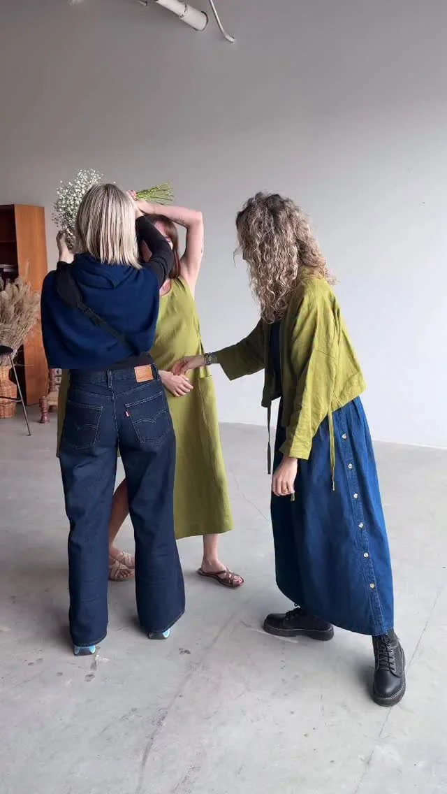 Inspired by nature, we consciously design our clothes, harmonizing with colours and shapes. Each item is meticulously crafted and made to order in our studio. Our linen fabric is sourced from Europe before it arrives here on the west coast. We pre-wash all of our fabrics before sewing our garments to efficiently manage any potential shrinkage.